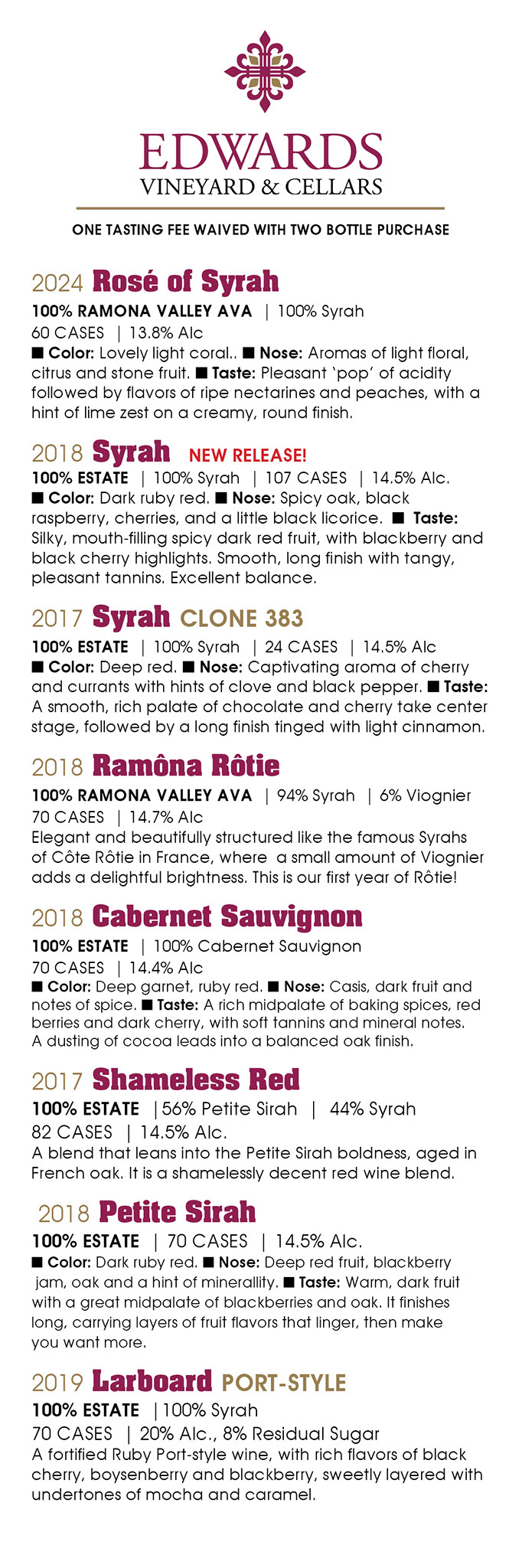 Many of our wines are single-barrel selections or blends made in very limited quantities.